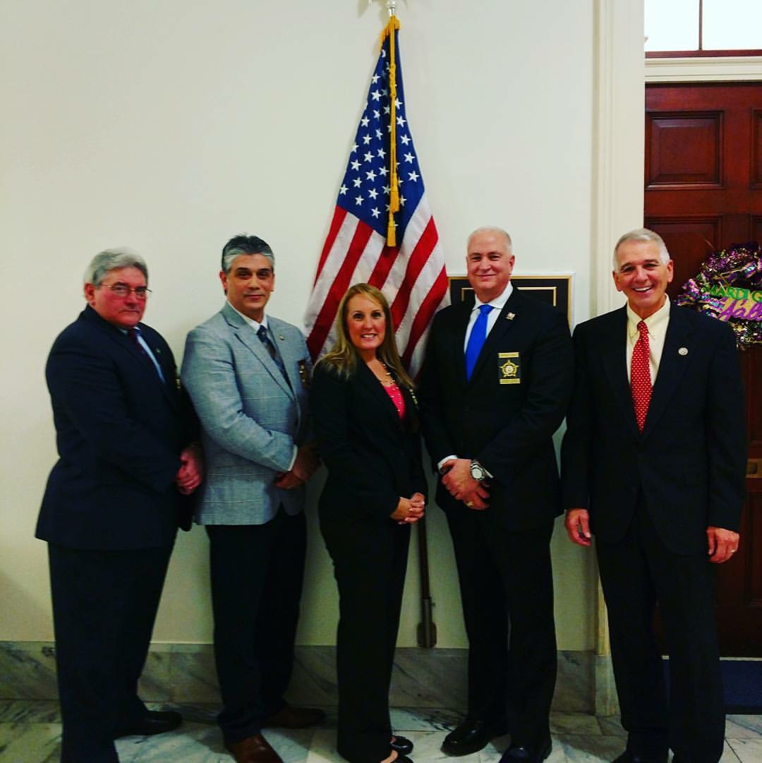 Each year, the National Fraternal Order of Police organizes a day where FOP members from across the United States meet in Washington D.C. to advance our legislative agenda. Members of lodges from across the country meet with their elected officials to discuss matters of national and local importance. It is a fantastic way to interact with our elected officials while demonstrating the political capital the FOP wields. Pictured below are Darrell Basco, Pat Yoes, James Gallagher, and Dawn Powell with some of our representatives in Congress. Deputy Chief Darrell Basco is employed by the Pineville Police Department and serves as President of the Louisiana Fraternal Order of Police. Capt. Pat Yoes is employed by the St. Charles Parish Sheriff's Office and serves as the National Secretary for the Fraternal Order of Police and is also past-president of the Louisiana Fraternal Order of Police, Sgt. James Gallagher (ret.) is retired from the New Orleans Police Department and services on the FOP's Legislative Committee. Capt. Dawn Powell is employed by the St. Tammany Parish Sheriff's Office and serves on the FOP's Legislative Committee.